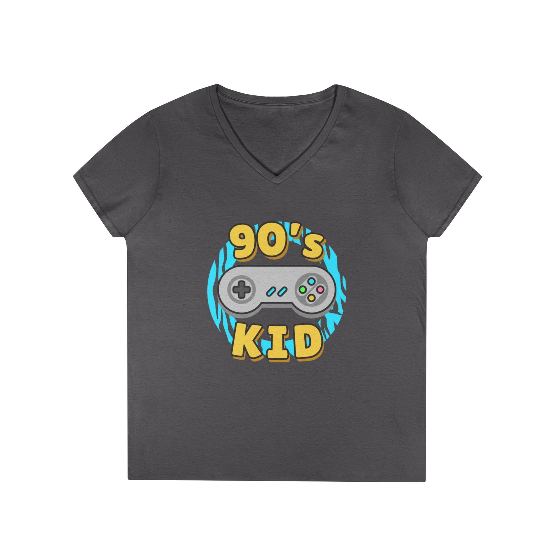 Elevate your casual wardrobe with this stylish Ladies' V-Neck T-Shirt. Designed for comfort and a modern fit, it features a unique graphic that celebrates the nostalgic vibes of the '90s, making it perfect for anyone who cherishes retro gaming and pop culture. The soft, breathable fabric ensures you stay comfortable all day, whether you’re out with friends or lounging at home. Its semi-fitted cut flatters various body types, while the durable construction means you can enjoy this tee for years to come. Ideal for gifting during birthdays, holidays, or special celebrations, this t-shirt resonates with those who grew up in the '90s and want to showcase their youthful spirit.